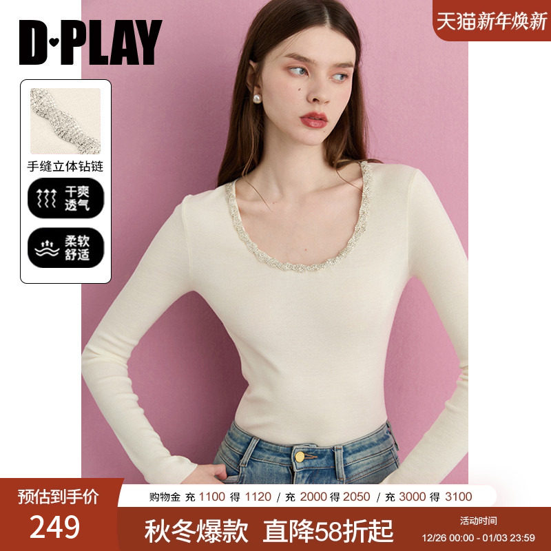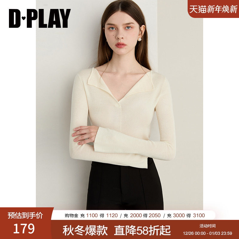 DPLAY2025年秋季新款白色针织衫女含羊毛上衣流行气质修身打底衫