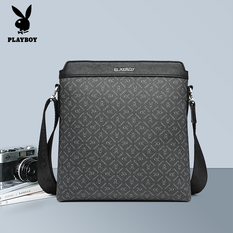 花花公子新款男士斜跨包百搭休闲印花单肩包商务手提包男款日字包