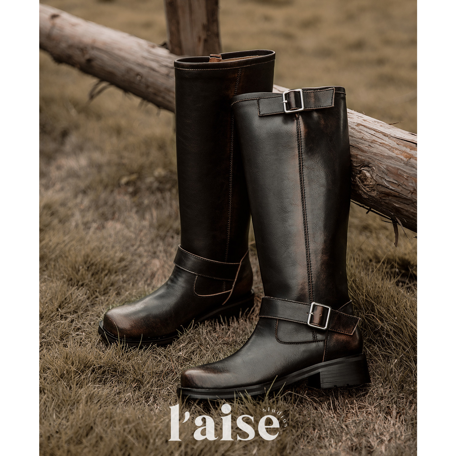 L'aise整靴全皮 手工加绒擦色做旧宽筒不过膝骑士靴高筒长靴女