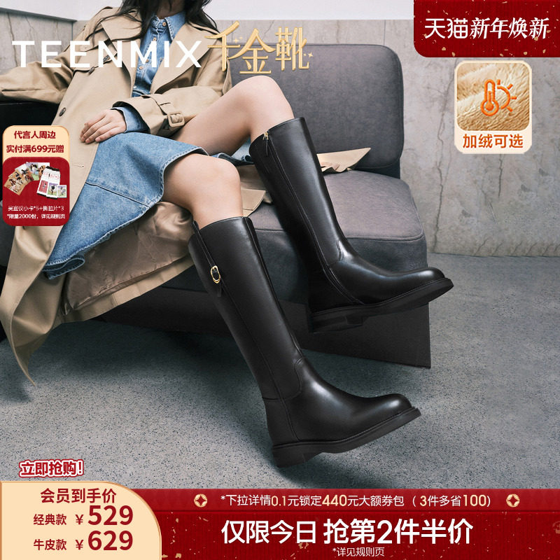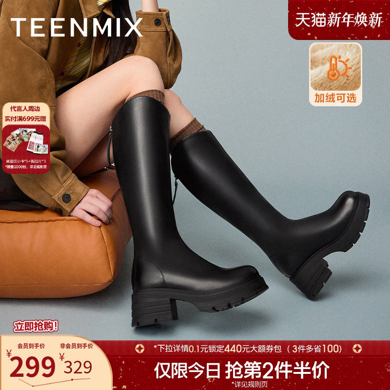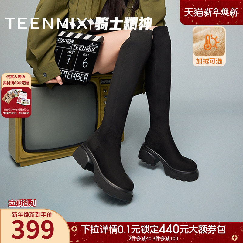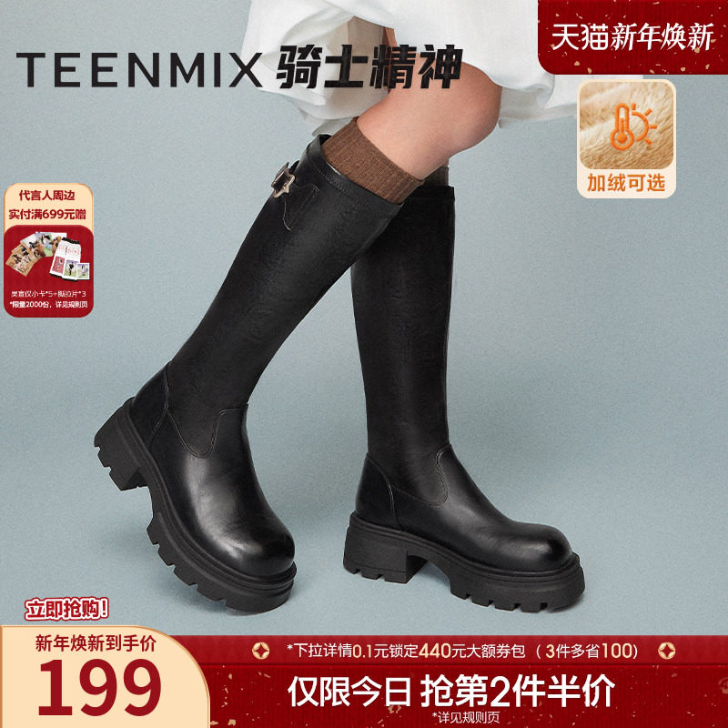 吴宣仪天美意千金靴厚底骑士靴加绒长靴女鞋冬新款高筒时装靴皮靴