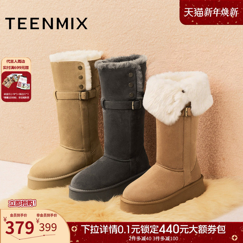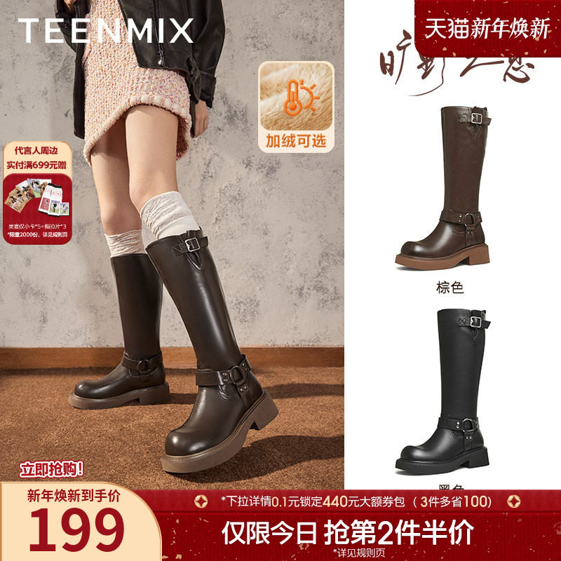 徐艺洋美洋同款小奶皮蹀愫冬新增高加绒显瘦骑士长靴女TA43704-12
