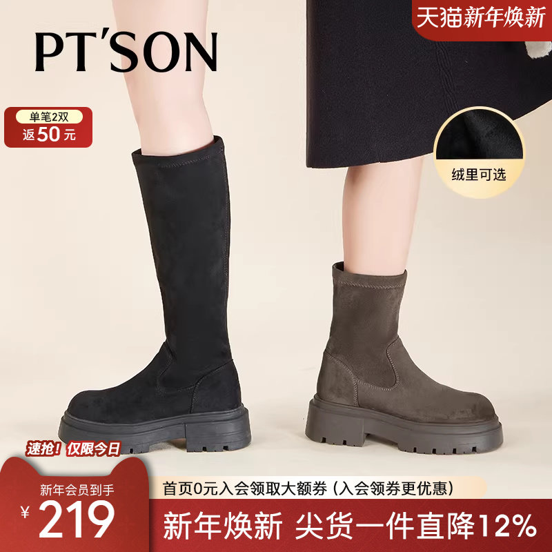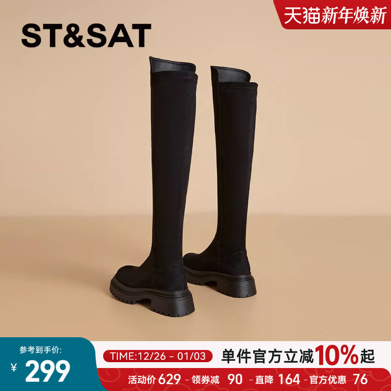 星期六法式弹力靴长靴女靴子2025秋冬新款厚底过膝靴长筒靴高筒靴