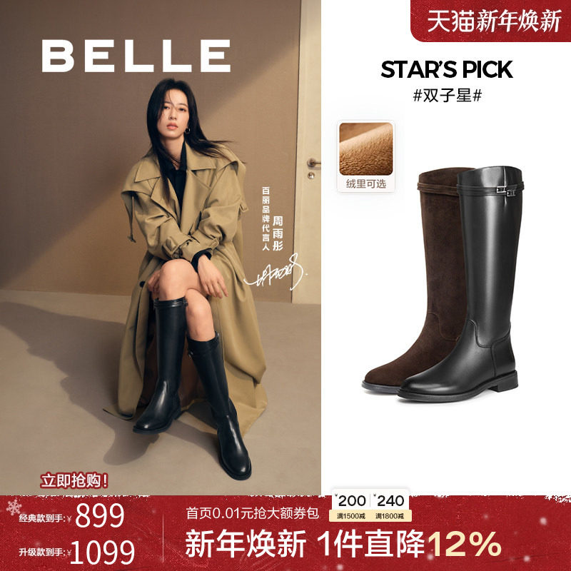 百丽女靴子厚底高长靴女冬季新款瘦瘦靴加绒保暖长筒靴D2J1DDG4