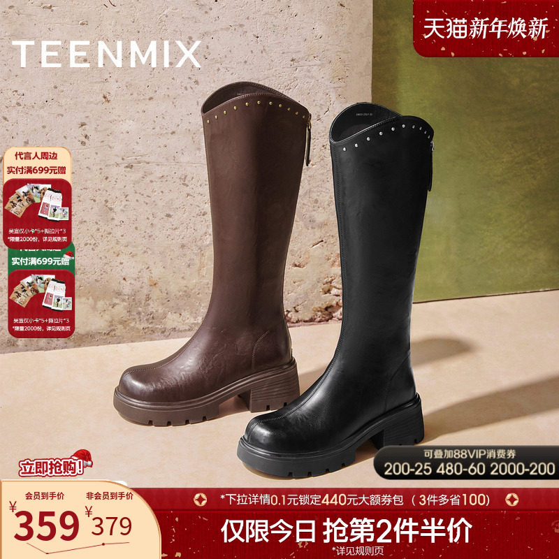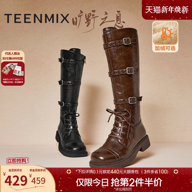 天美意复古厚底西部靴短靴骑士靴长靴女鞋子高筒时装靴2025冬新款
