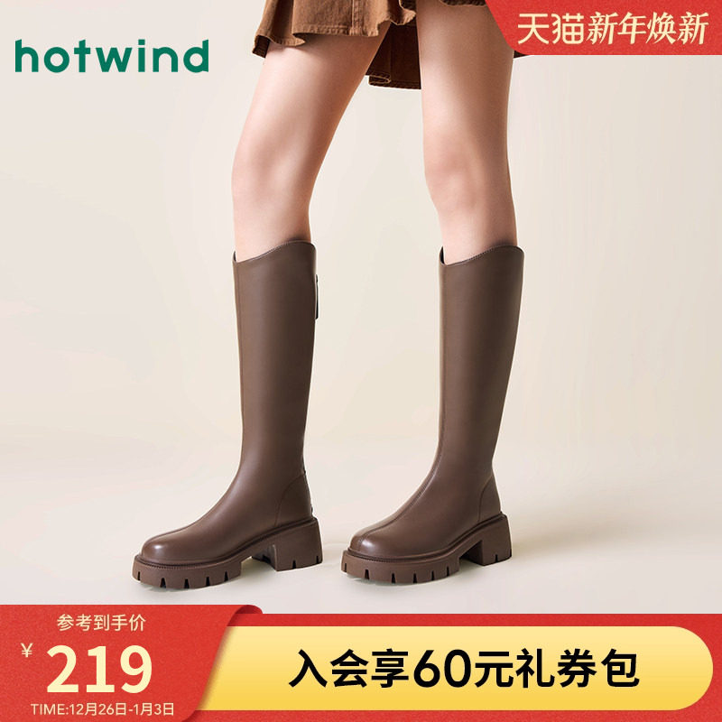 热风2024年冬季新款长筒靴女百搭靴子骑士靴厚底增高小个子长靴女