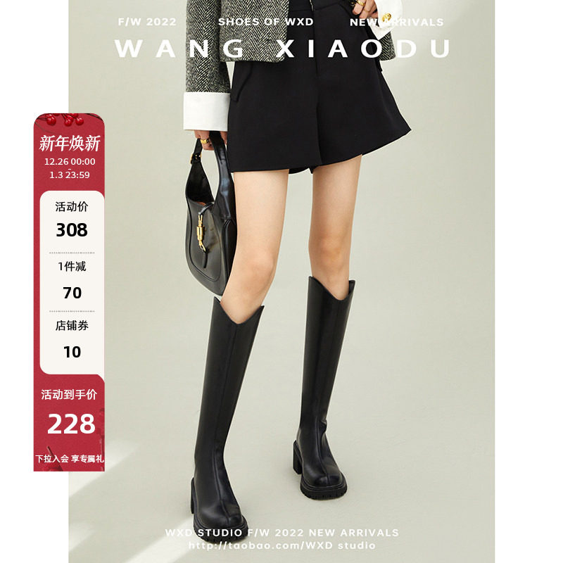 【王小毒】赴约●粗跟长靴女冬季新款V口靴子女加绒长高筒骑士靴