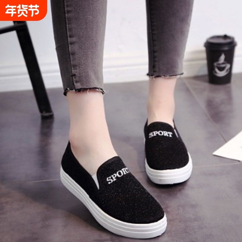 老北京布鞋春秋女鞋帆布鞋学生韩版休闲平底懒人牛筋底一脚蹬单鞋