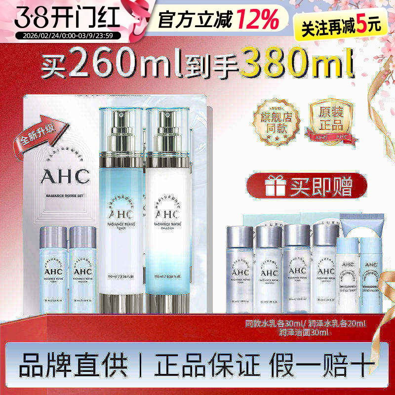 韩国ahc水乳套装专研柔肤水乳套盒补水保湿控油护肤品官方正品
