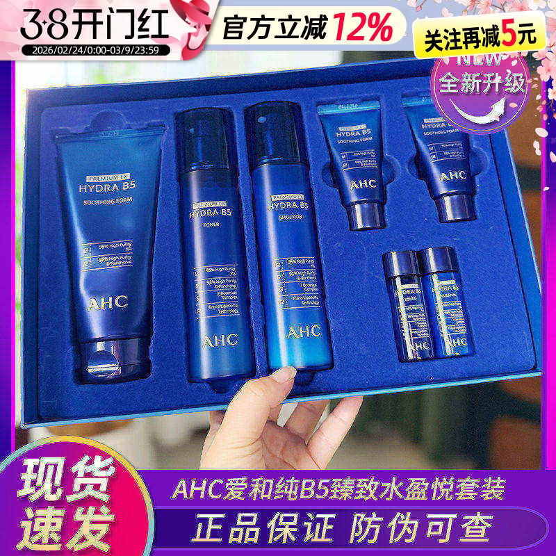 韩国AHC水乳套装全套B5玻尿酸7件套护肤品女生男士官方旗舰店正品