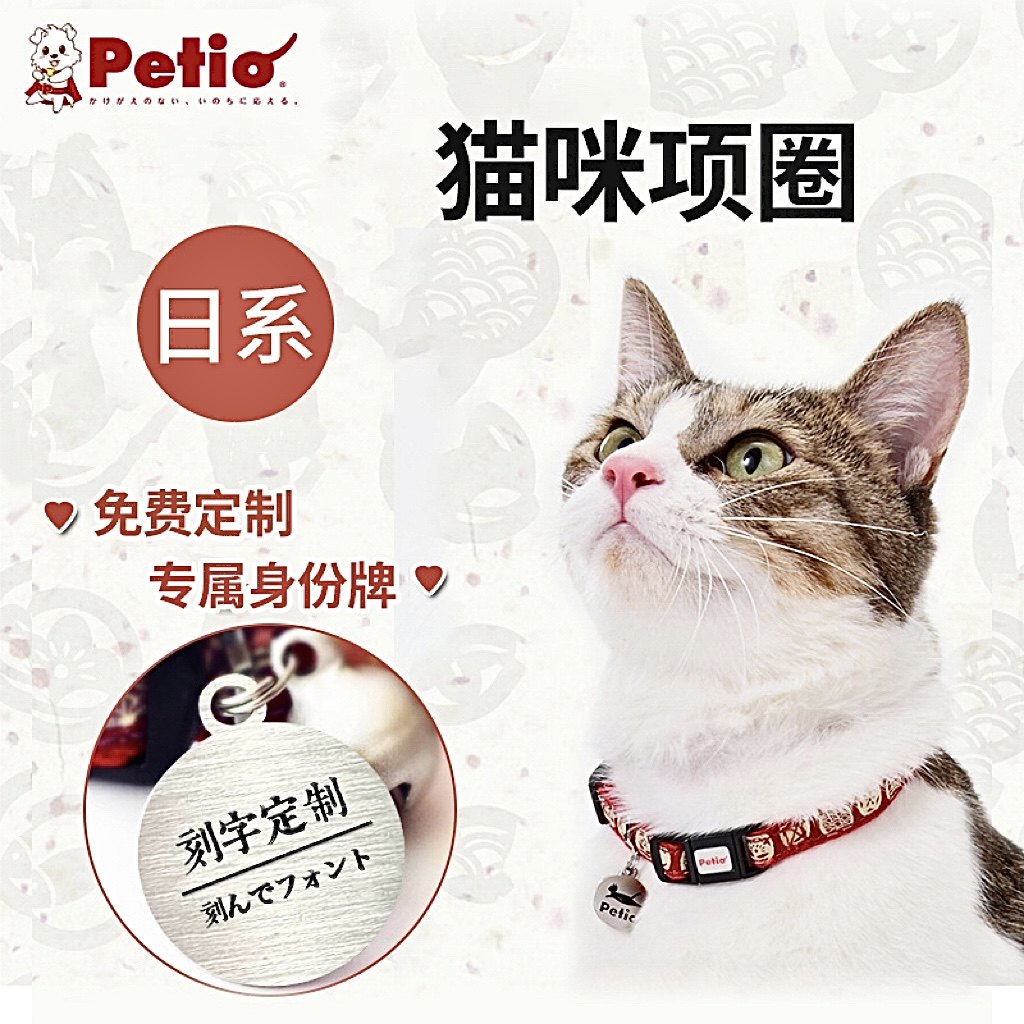 日本Petio猫项圈带铃铛猫颈圈防窒息防走失铭牌吊牌刻字定制防丢