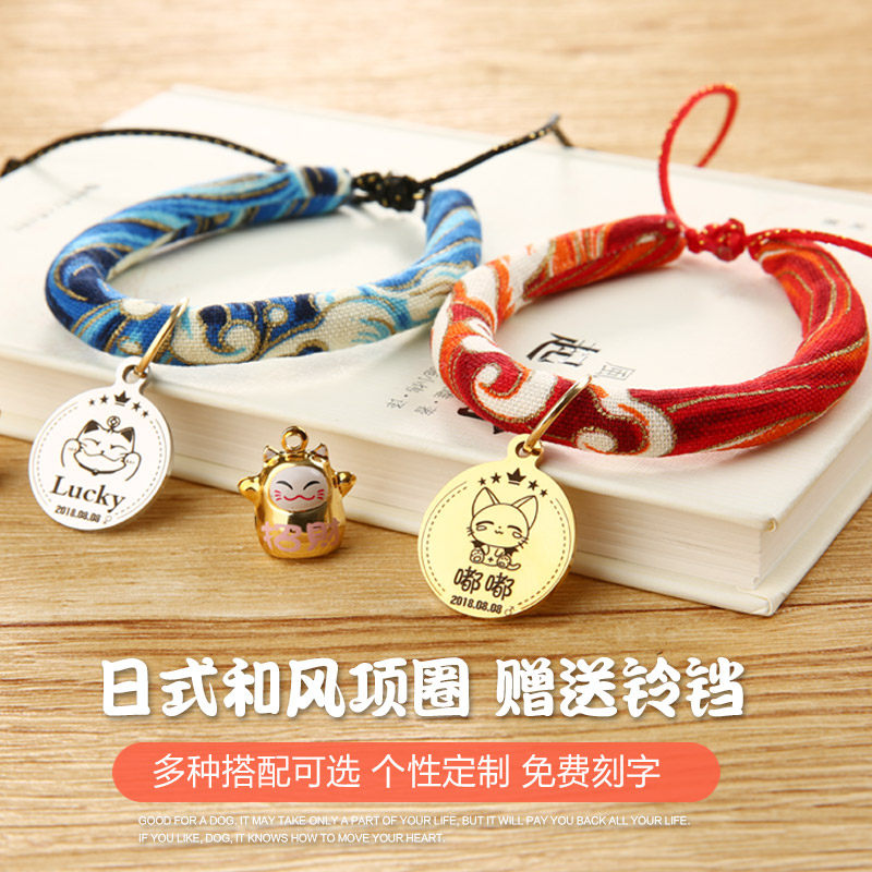猫项圈带铃铛猫咪用品日本和风颈圈猫圈猫牌刻字除跳蚤防虱子驱虫