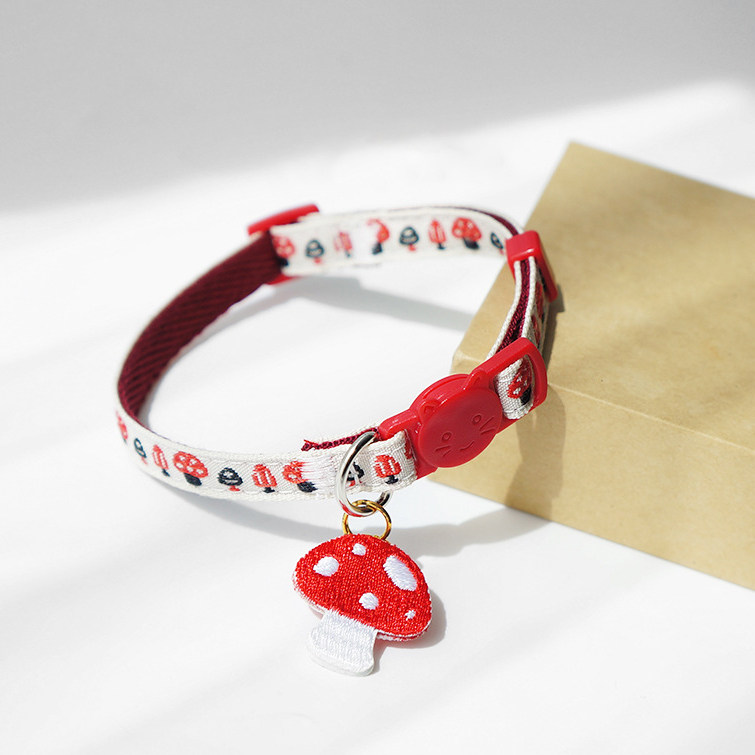 新款宠物猫咪狗狗织带项圈水果配件铃铛小型犬猫脖圈安全扣可调节