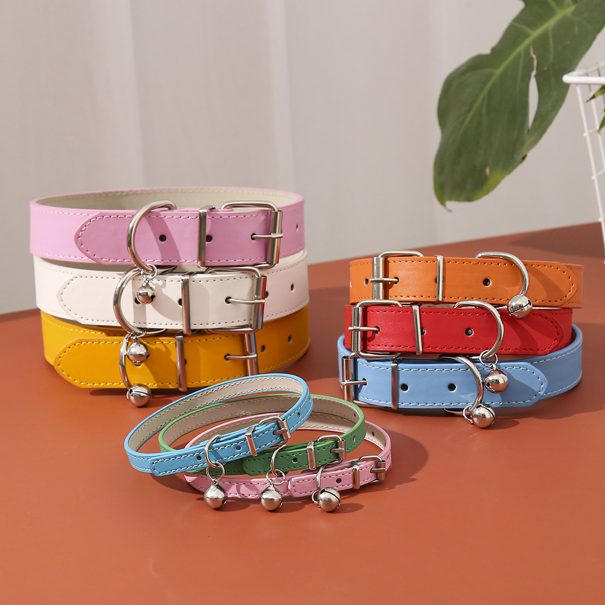 宠物PU皮革项圈带铃铛狗项圈可调节棉花娃娃脖圈小狗脖圈猫咪项圈