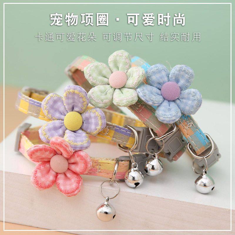 新款宠物项圈花边铃铛雏菊花项圈脖圈小型狗狗猫咪带小花幼犬用品