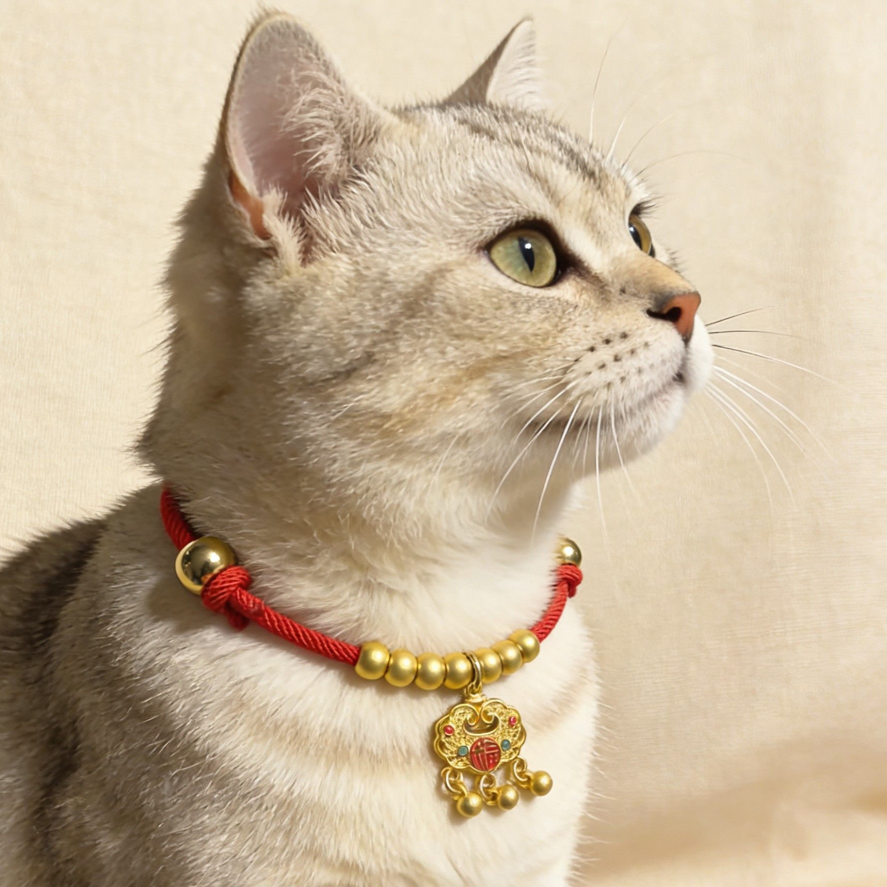 猫咪项圈金锁带铃铛狗狗项链小铃铛不掉色可调节新年春节过年脖圈