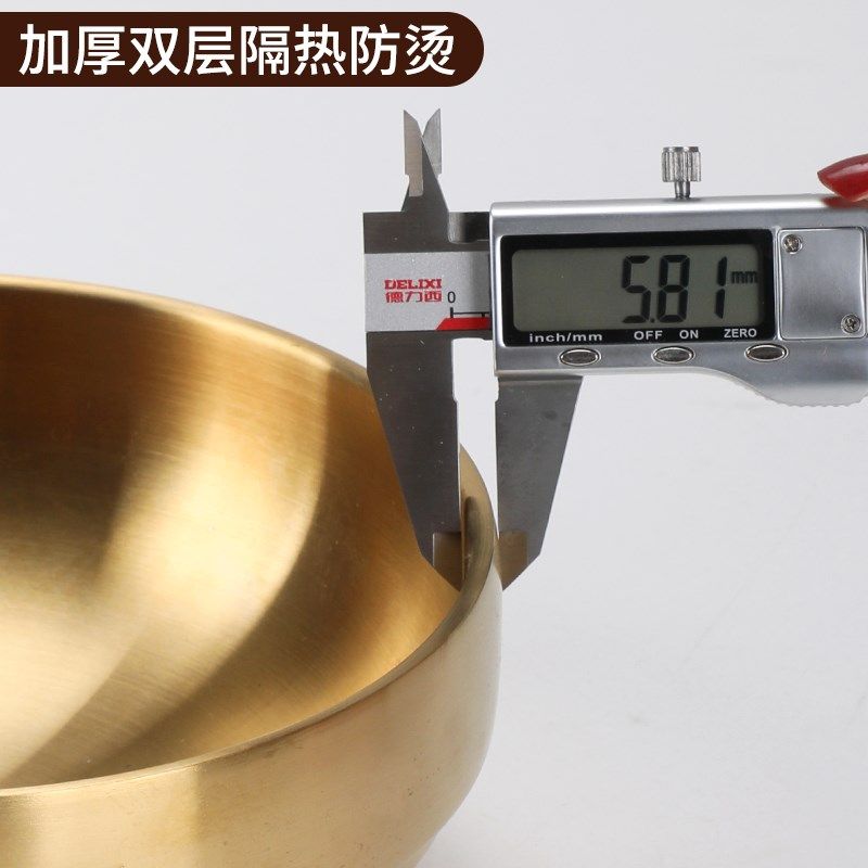 韩国冷面碗金色不锈钢泡面碗拉面碗双层韩式拌饭碗螺丝粉碗大汤碗
