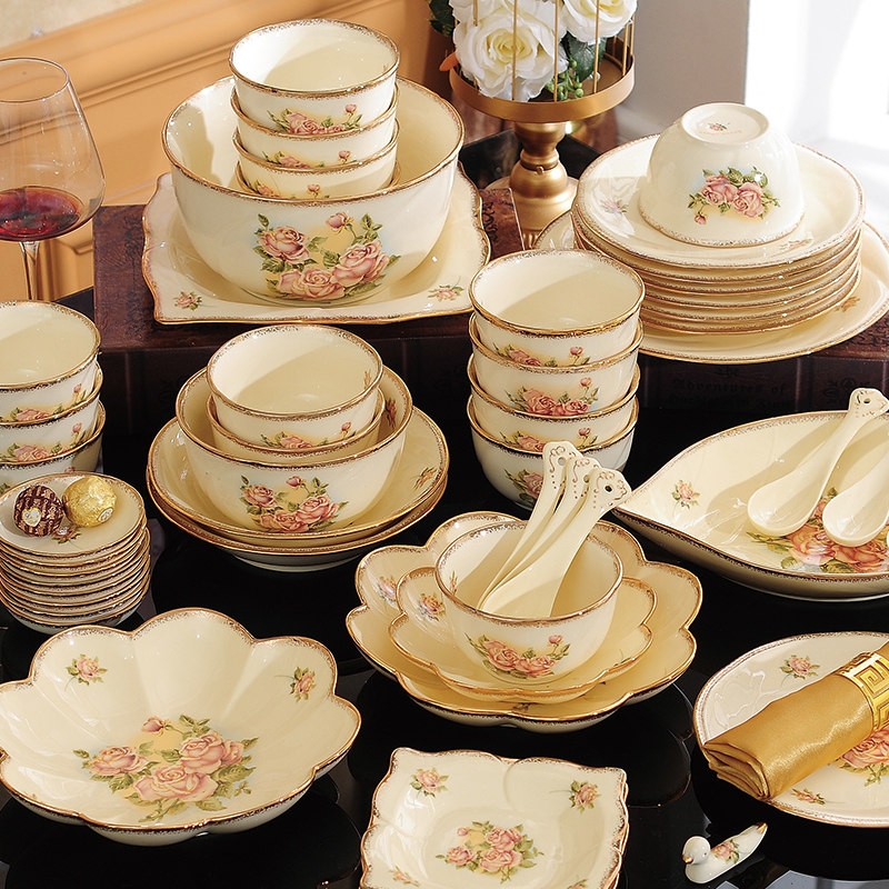 欧式餐具碗盘子组合菜盘家用出口韩国碗碟套装高档陶瓷吃饭米饭碗