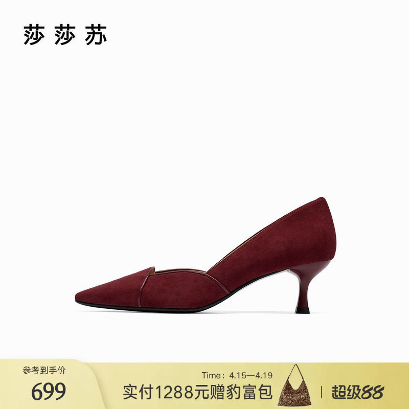 星期六真皮绒面礼仪工作通勤鞋女2026春新款尖头细跟高跟浅口单鞋