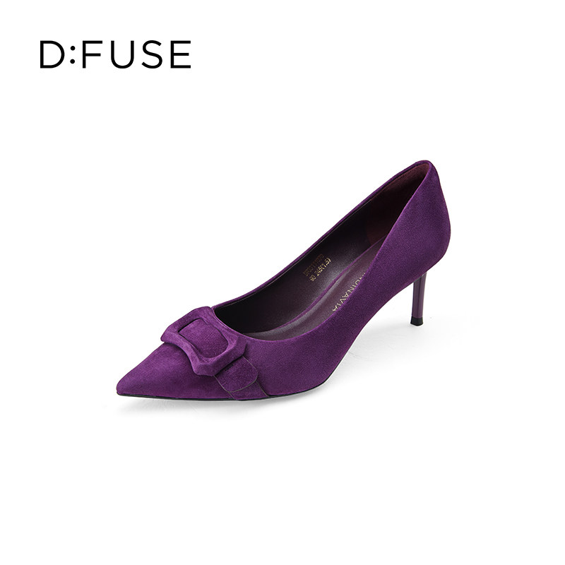 DFuse迪芙斯绒面羊皮细跟高跟单鞋女尖头浅口时尚日常DF33111070