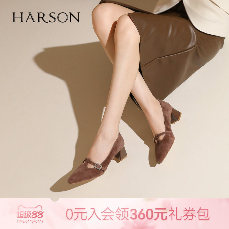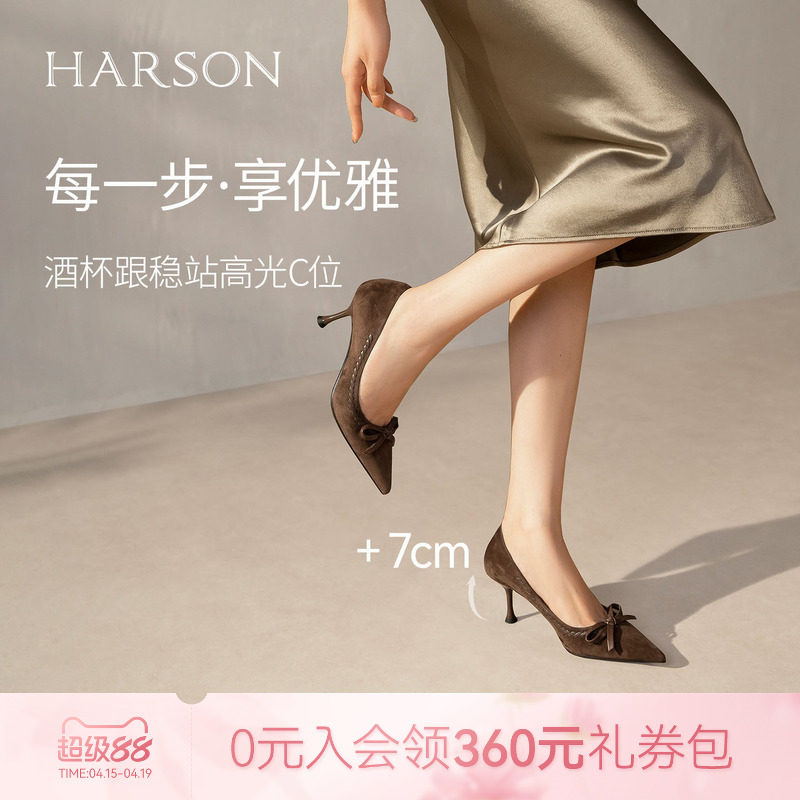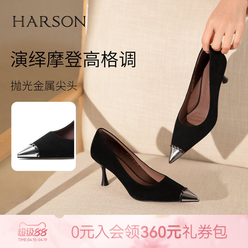 哈森/HARSON【金哨官】26春新款尖头绒面高跟鞋千金感女鞋不累脚