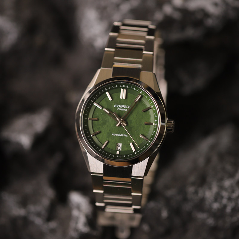 卡西欧机械表男表EDIFICE钢带防水背透绿色三针简约EFK-100D-2A
