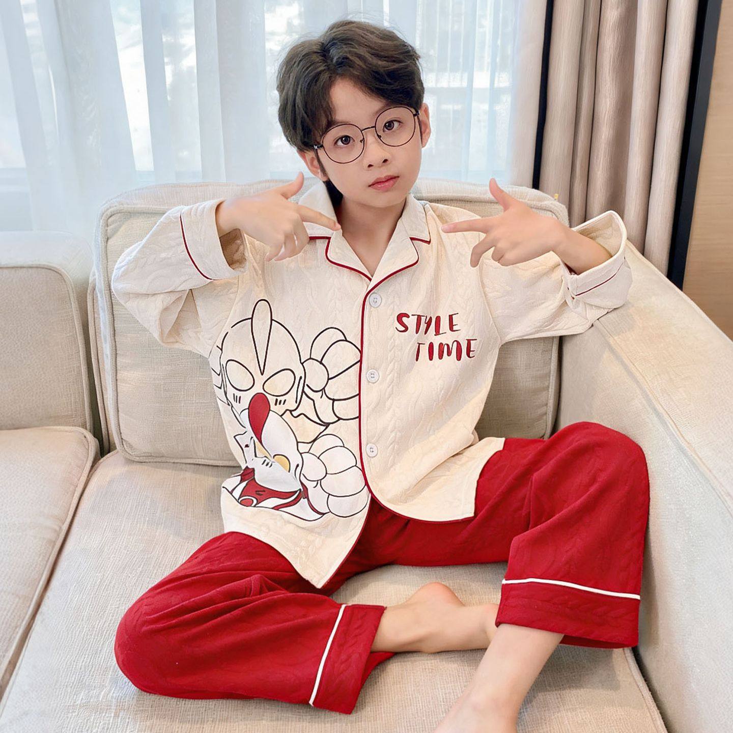 2026新年儿童大红睡衣大男童春秋款长袖纯棉套装中大童男孩家居服