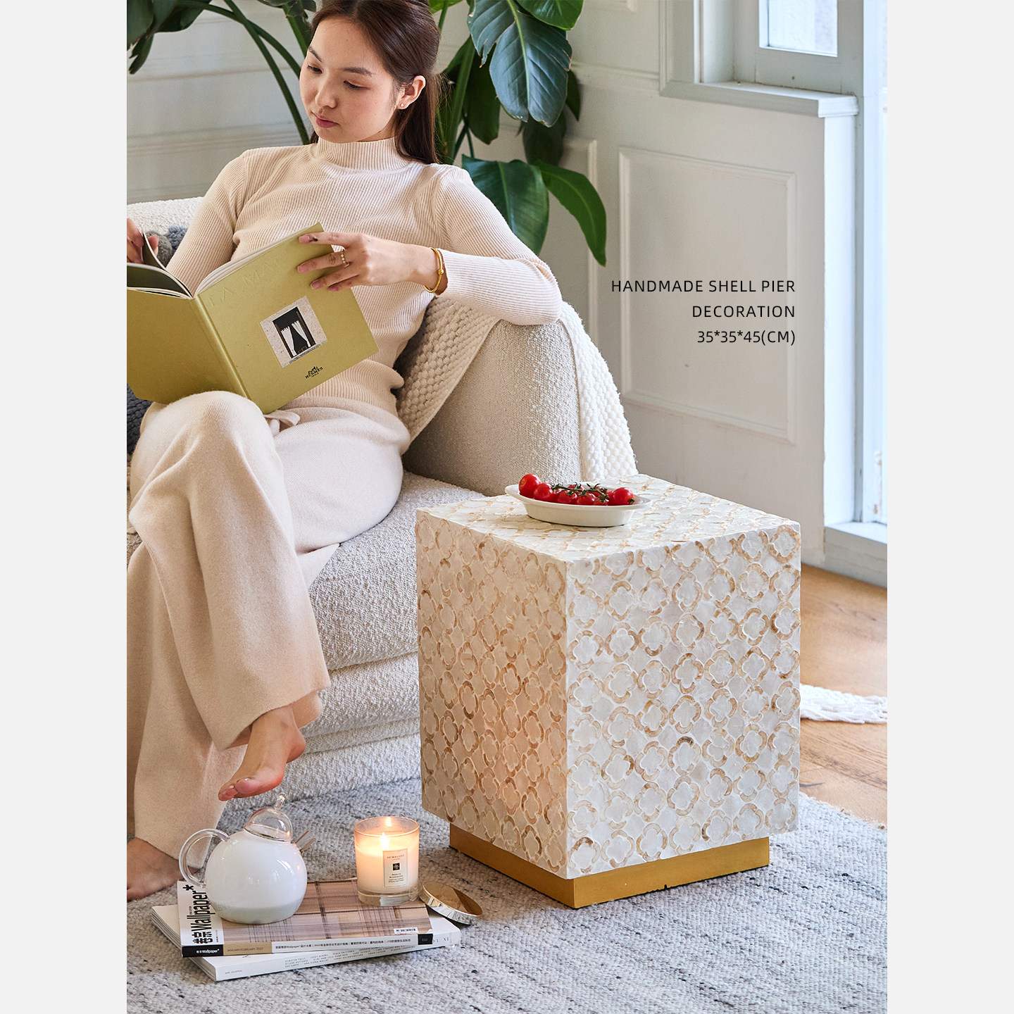 迷屿法式中古贝壳边几茶几客厅沙发角几鼓凳换鞋凳子装床头柜桌子