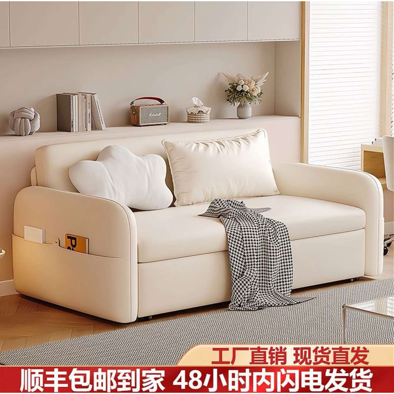 奶油风沙发床可折叠两用小户型客厅书房储物单双人抽拉床网红沙发