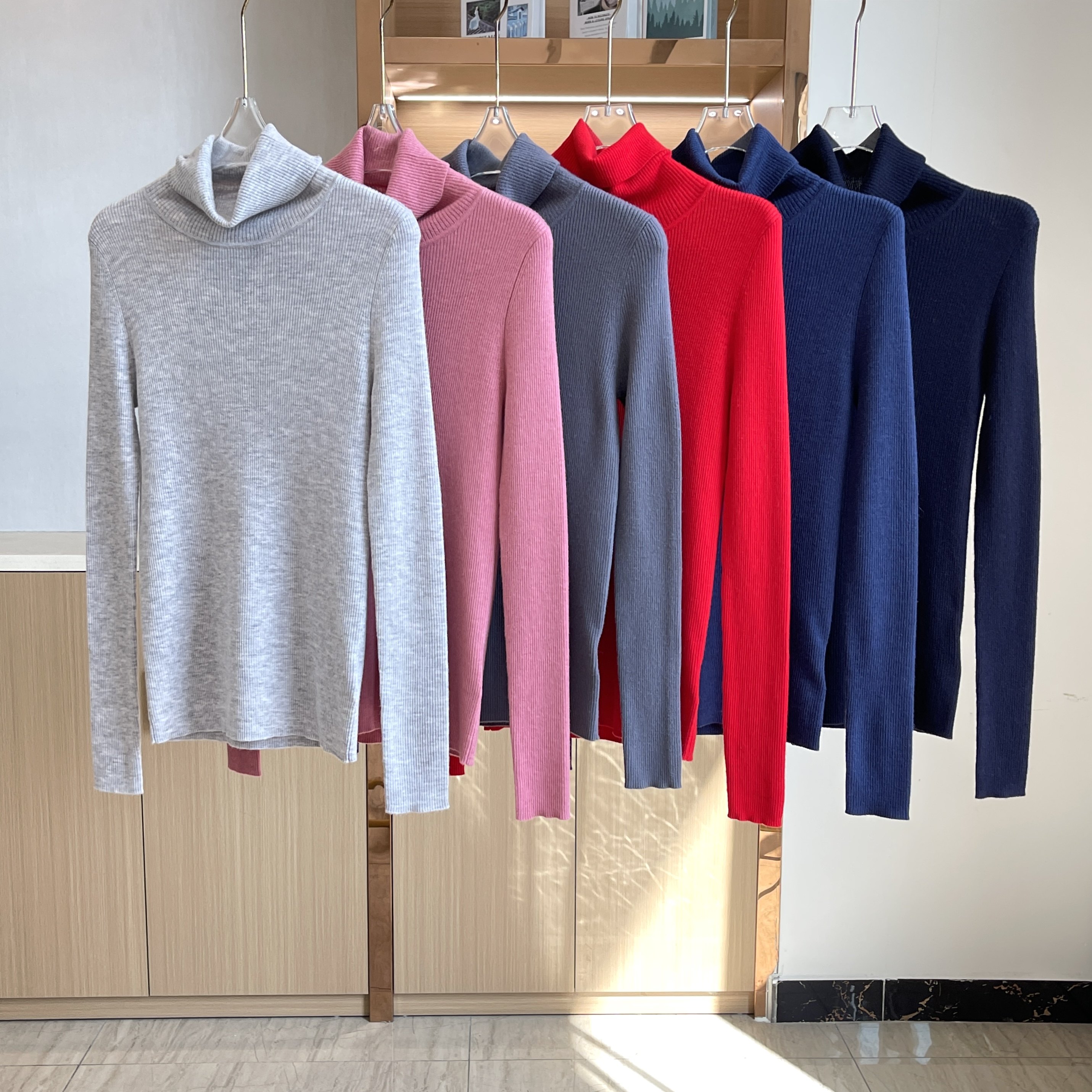 外贸精品百搭高领针织衫螺纹棉高弹修身套指长袖毛衫2023春季新款