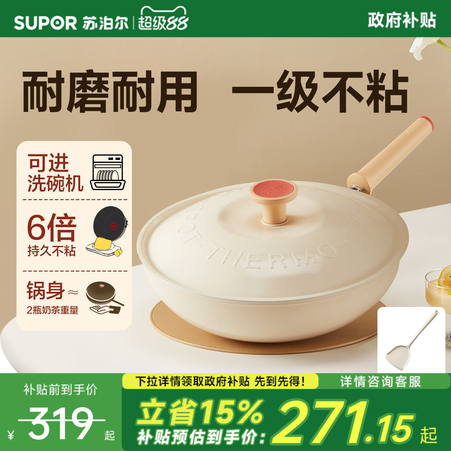 苏泊尔有钛不粘锅炒锅家用麦饭石色炒菜锅平底锅加深不沾电磁炉锅