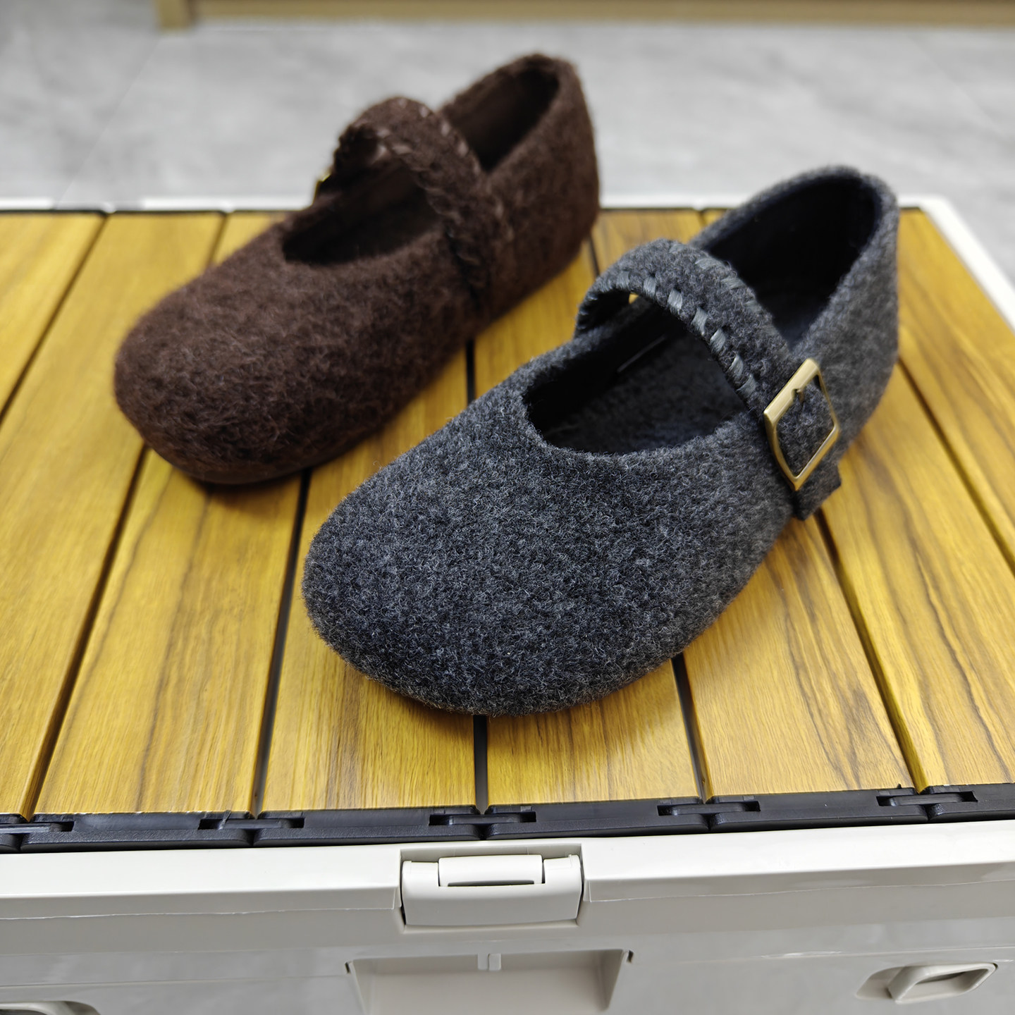 灰色玛丽珍毛毛鞋女冬2025新款韩版呢子单鞋女平底加绒保暖棉鞋子