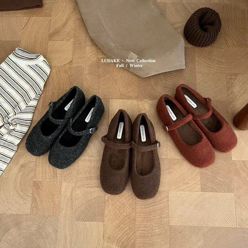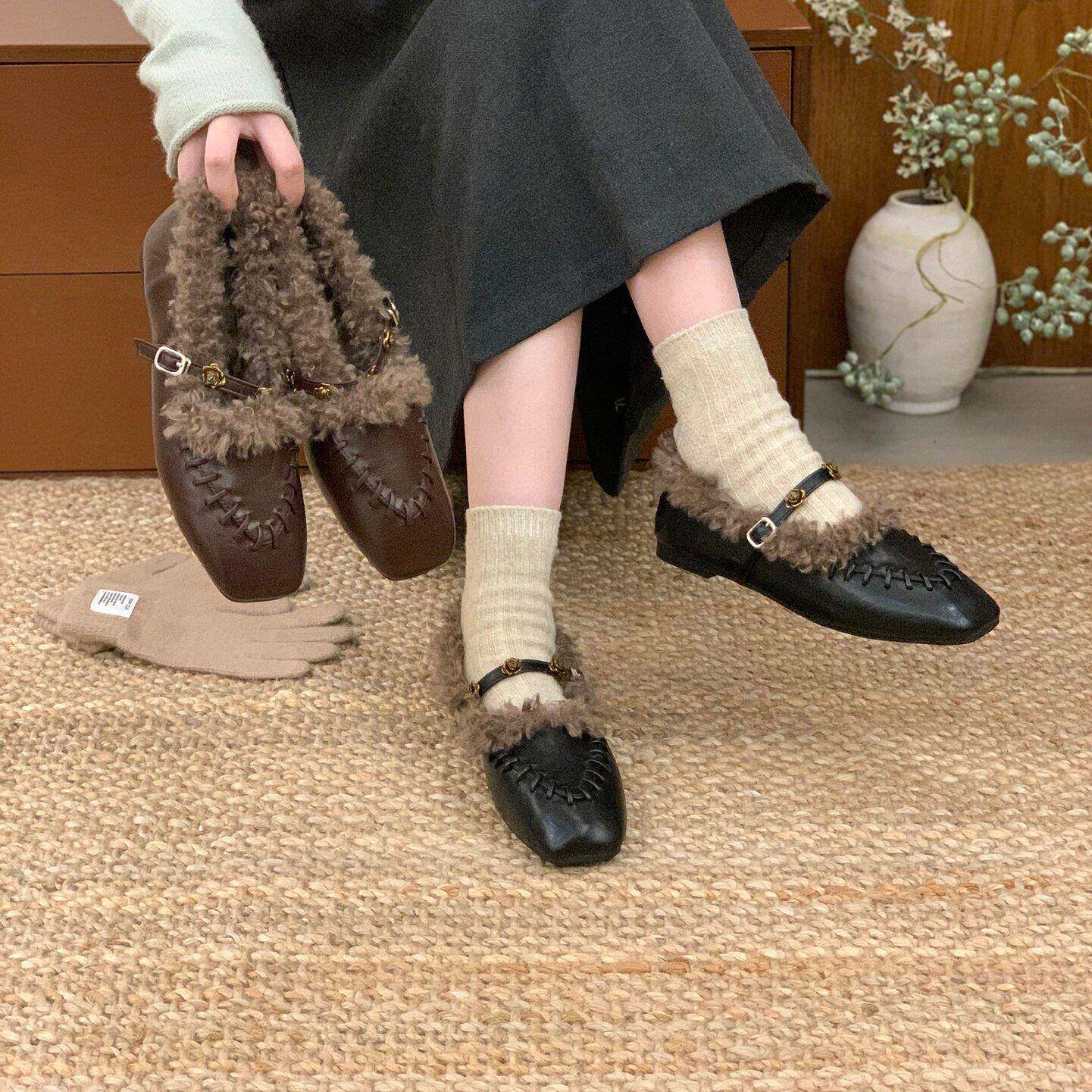 LUDAKE鹿大可 软糯又温暖~冬季加绒玛丽珍鞋女韩版复古毛毛单鞋