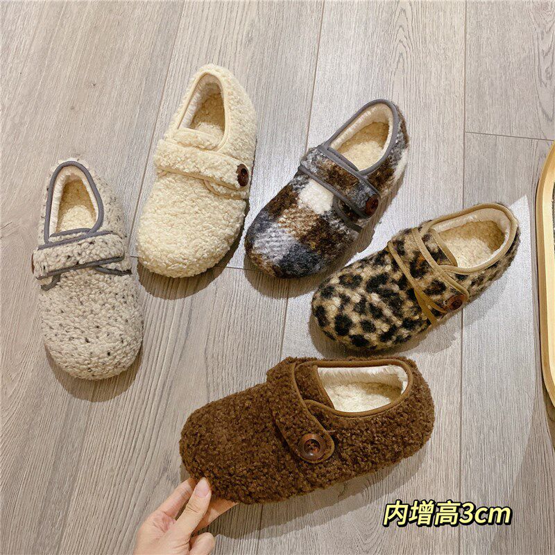 温柔韩版内增高外穿保暖浅口单鞋女小香风一字扣百搭温柔毛毛鞋子