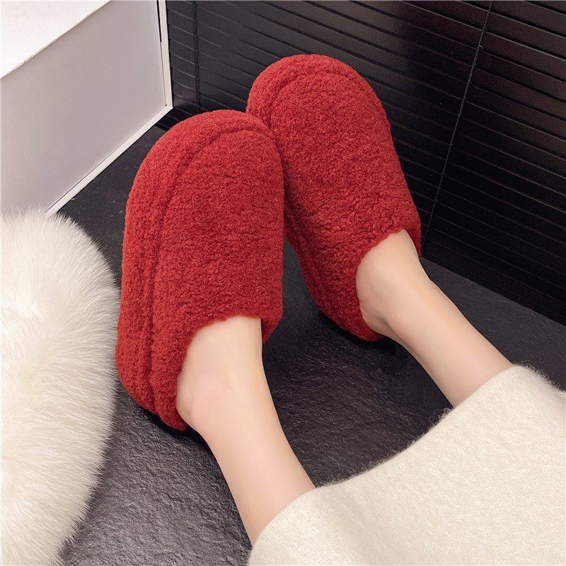 韩版安哥拉红毛毛拖鞋女秋冬季舒适一脚蹬单鞋小个子增高包头拖鞋