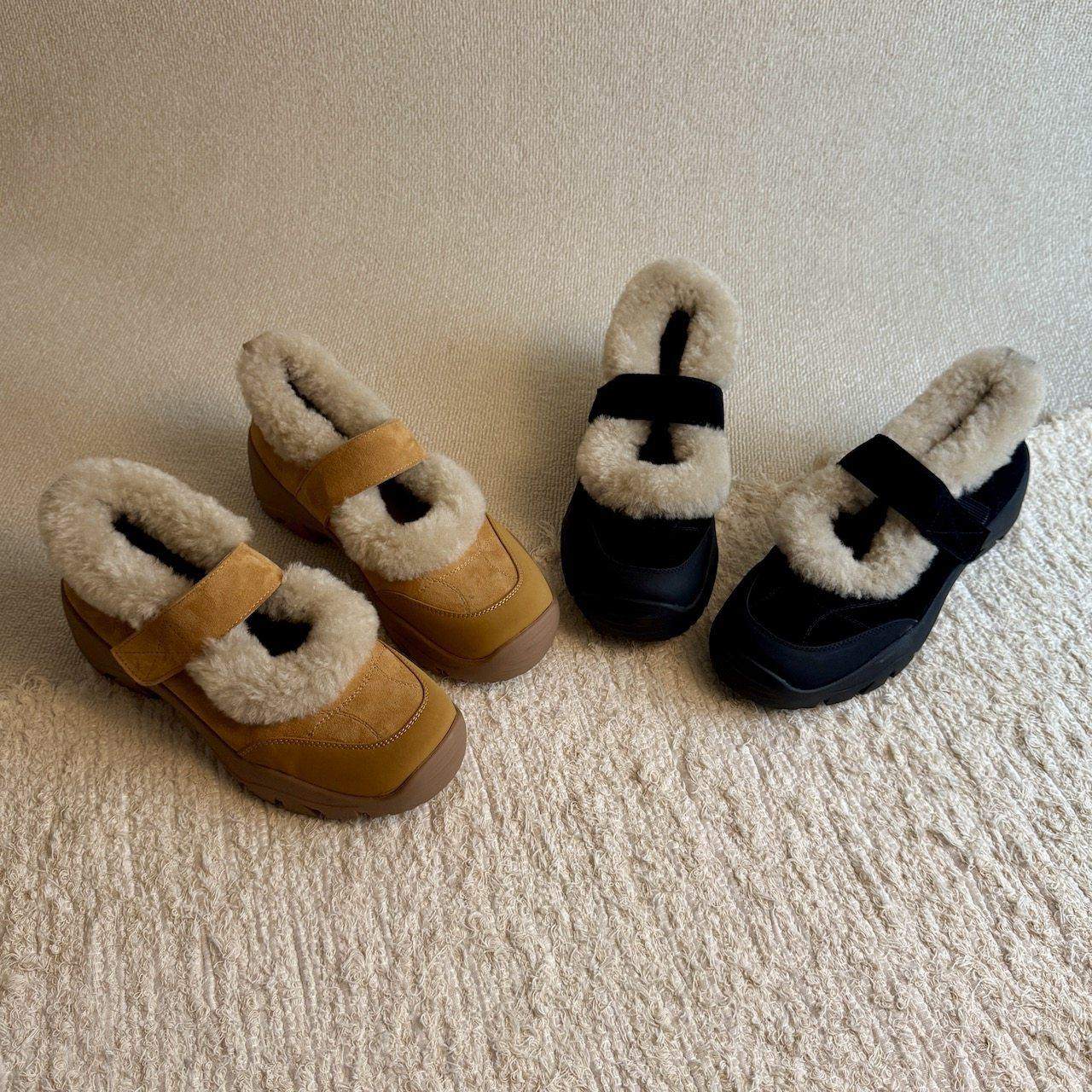 韩版毛毛玛丽珍鞋女2025冬季新款一字扣加绒保暖棉鞋浅口平底单鞋