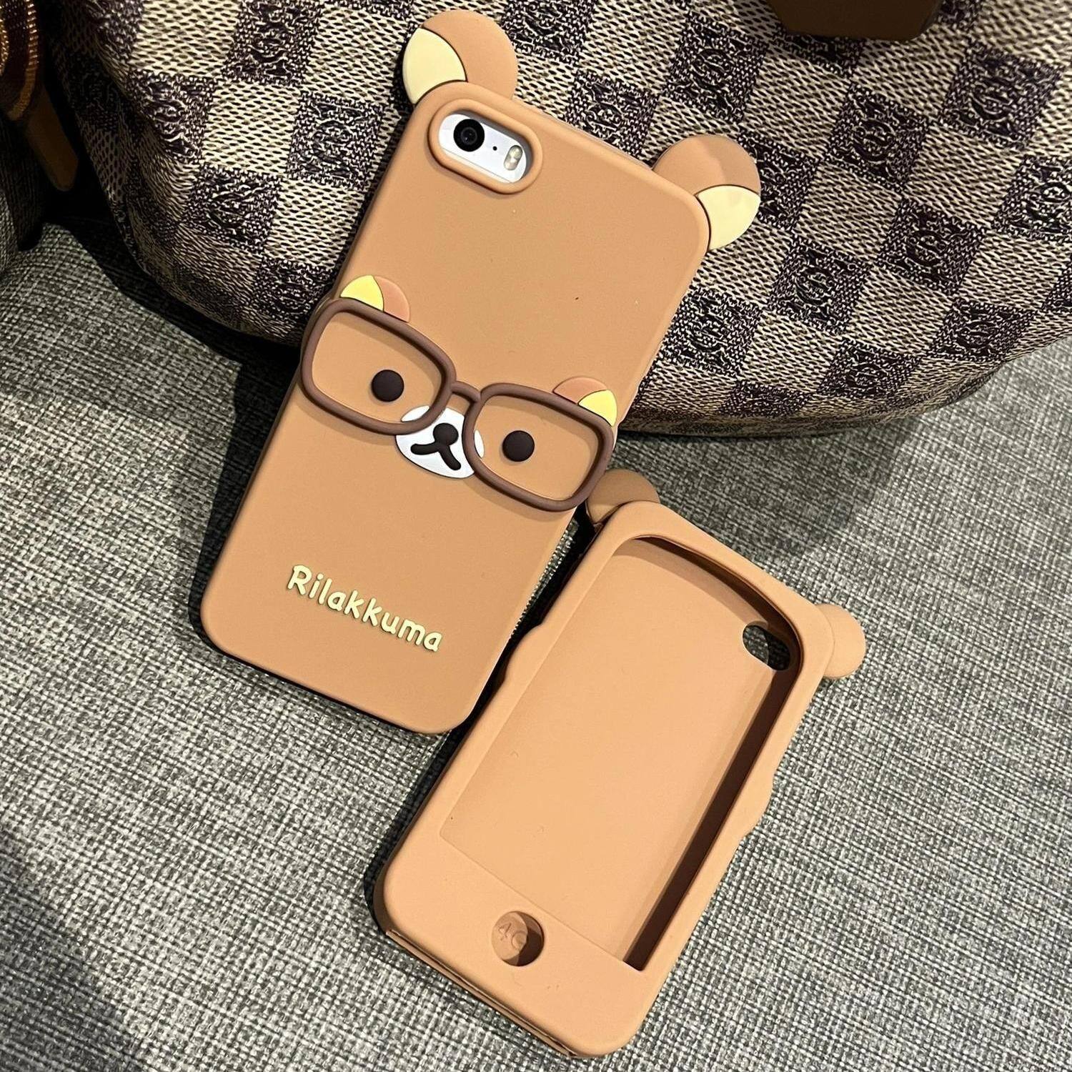 可爱硅胶戴眼镜轻松熊KT猫咪适用iPhone5S手机壳苹果15/16plus全包13/12mini保护套678P新款4se防摔11promax