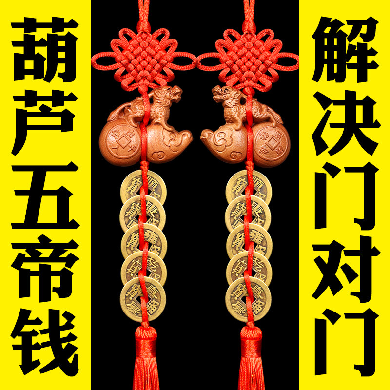 五帝钱铜葫芦挂件门对门真品钱串化解大门卧室招财中国吉祥结挂件