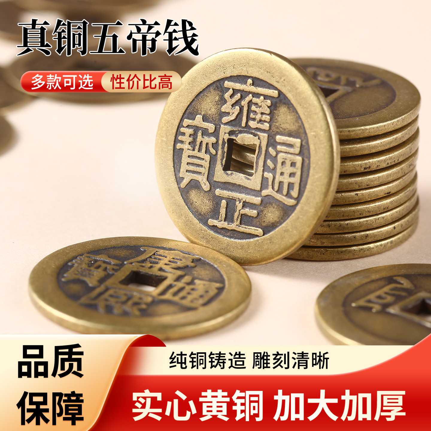 包邮古玩黄铜五帝十帝铜钱古币仿古清朝铜币顺治乾隆康熙通宝方口