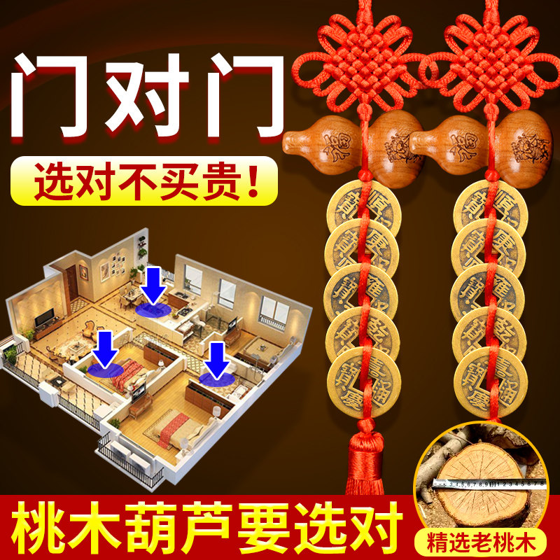 五帝钱真品门对门真铜葫芦挂件纯铜入户门中国结招财正品铜钱古币