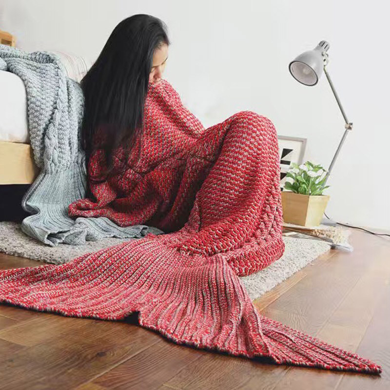 INS韩式美人鱼毯子蔡依林同款鱼尾毯单人盖毯午睡沙发绒毯人鱼毯