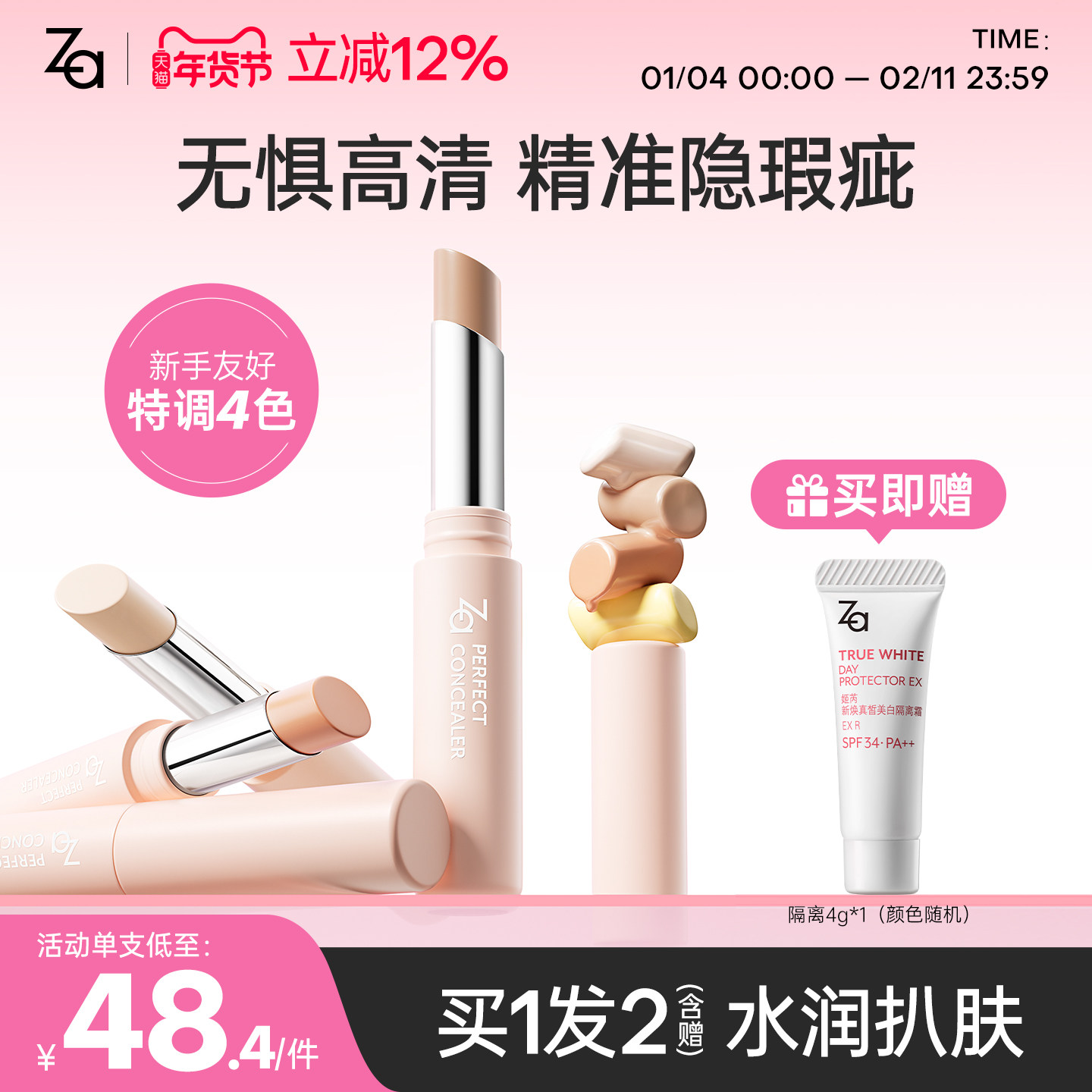 Za姬芮零图遮瑕膏笔液遮盖黑眼圈痘印斑点眼袋泪沟提亮持妆三文鱼