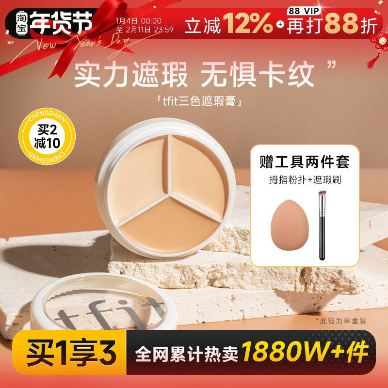 程十安tfit遮瑕膏三色遮瑕盘女遮盖痘印黑眼圈专用强力提亮tifit