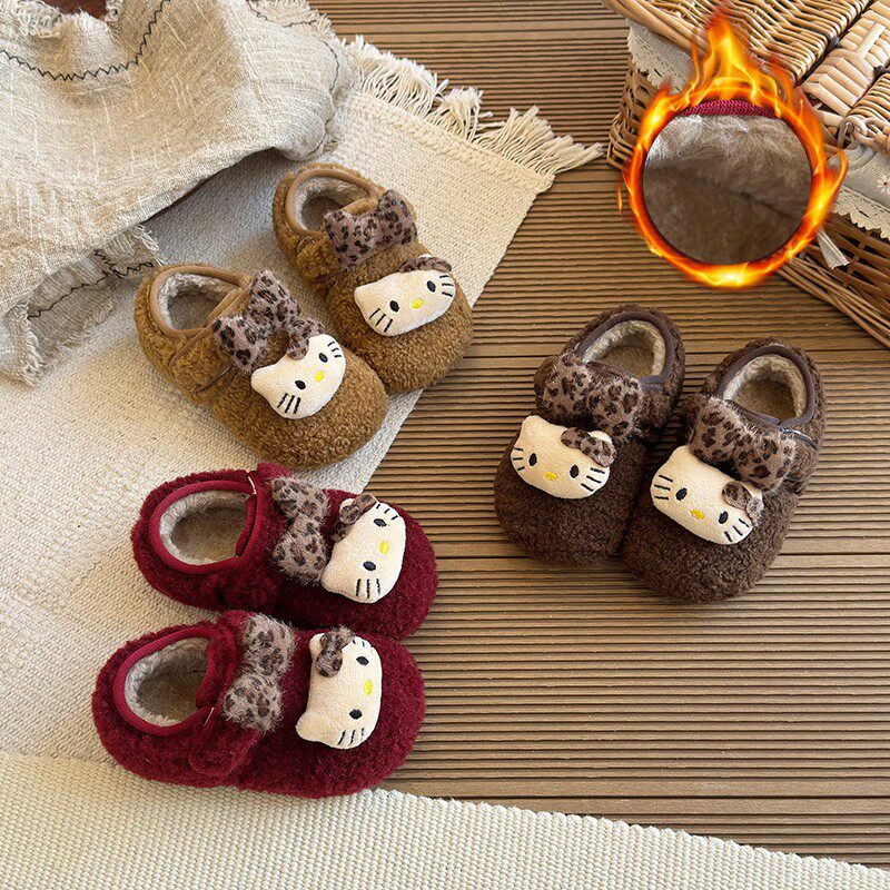 女童kt猫棉鞋毛毛鞋2025冬季新款儿童加绒保暖棉鞋宝宝软底豆豆鞋