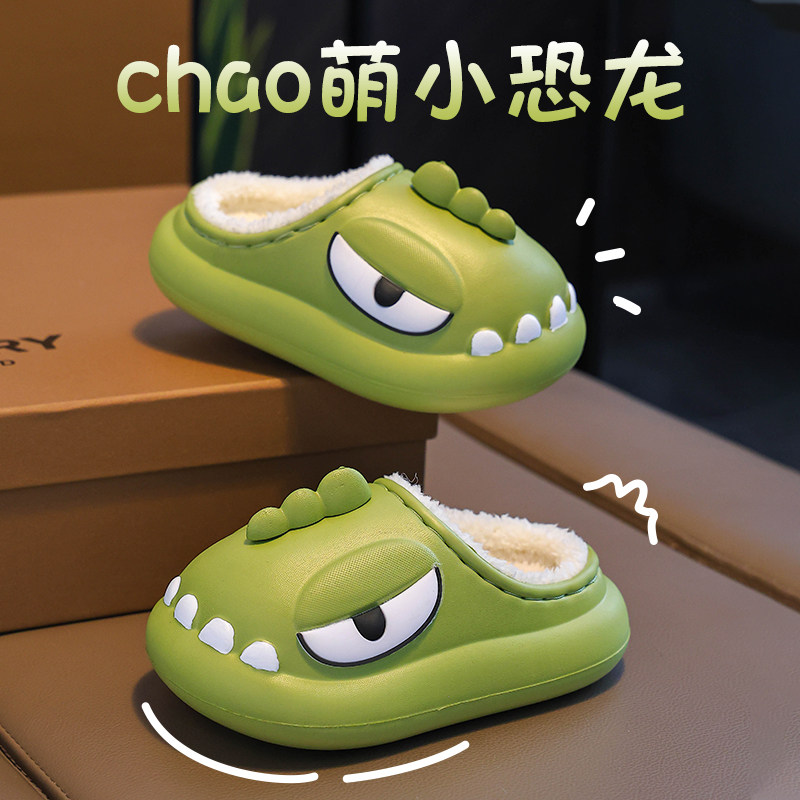 恐龙棉拖鞋儿童男童秋冬可爱居家用防滑厚底防水亲子棉拖鞋包跟冬