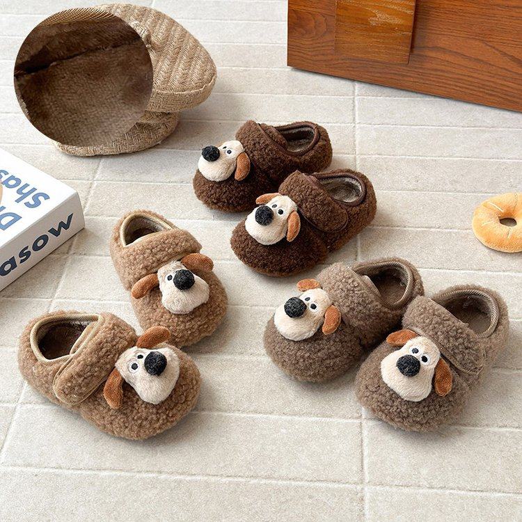 细细条 保暖儿童豆豆鞋休闲平底加绒男童女童简约魔术贴棉拖鞋冬