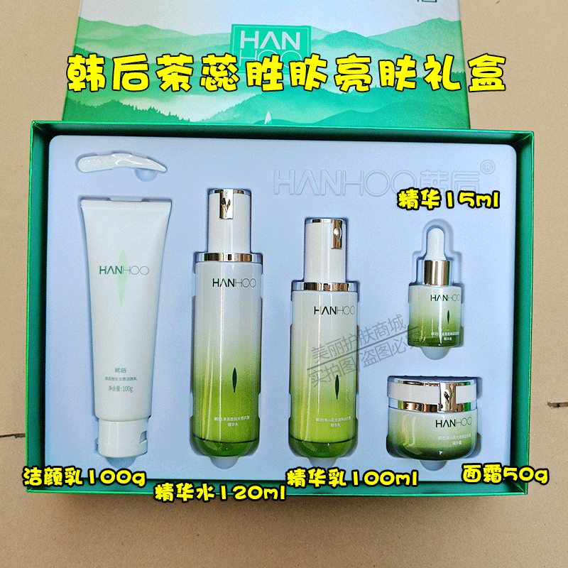 韩后茶蕊水乳护肤套装美白提亮精华液补水保湿熬夜去黄气护肤组合