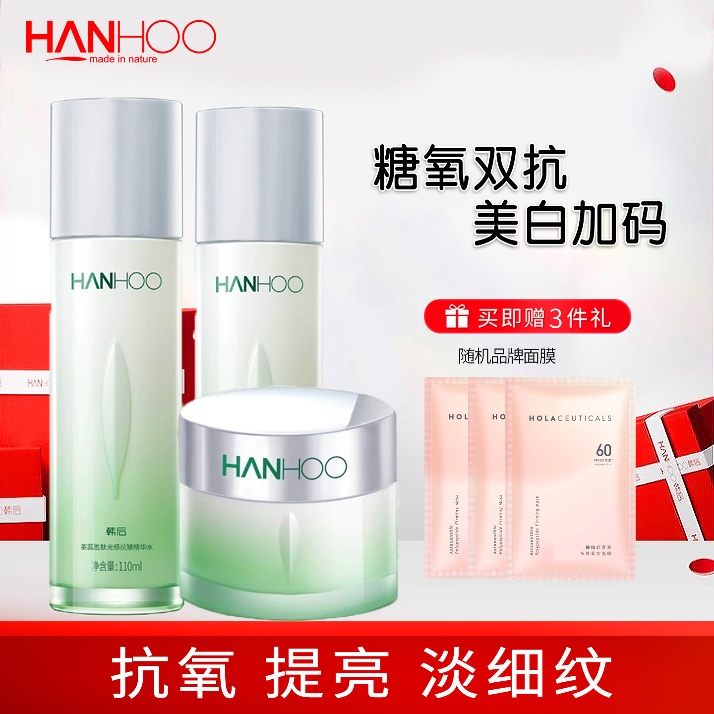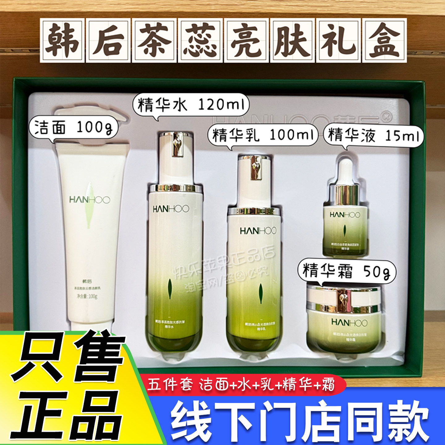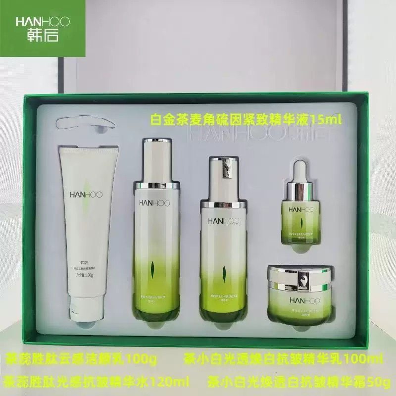 韩后茶蕊胜肽亮肤礼盒水乳美白淡斑淡纹补水保湿水润五件套装刮码