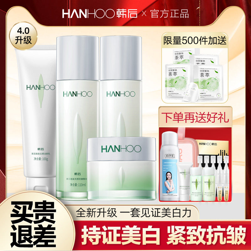 韩后茶蕊嫩白护肤品套装正品官方旗舰店补水美白淡斑去黄保湿水乳