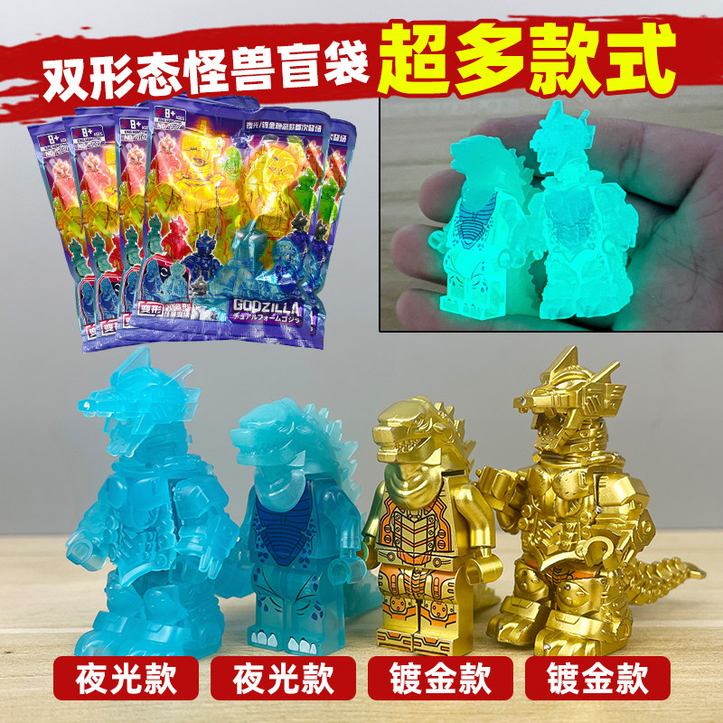 夜光哥斯拉人仔盲袋小怪兽盲盒5-10岁男孩子拼装积木益智儿童玩具