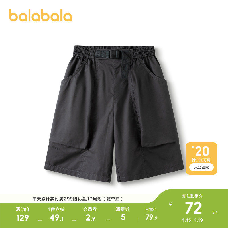 巴拉巴拉童装儿童中裤男童短裤2026夏大童女童裤子防泼水凉感宽松